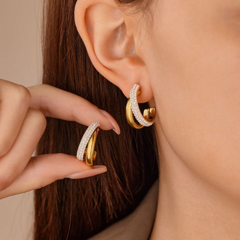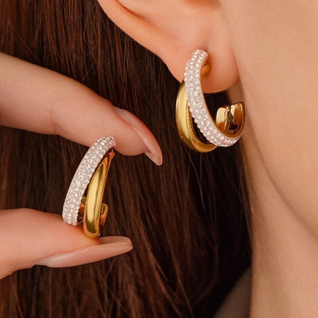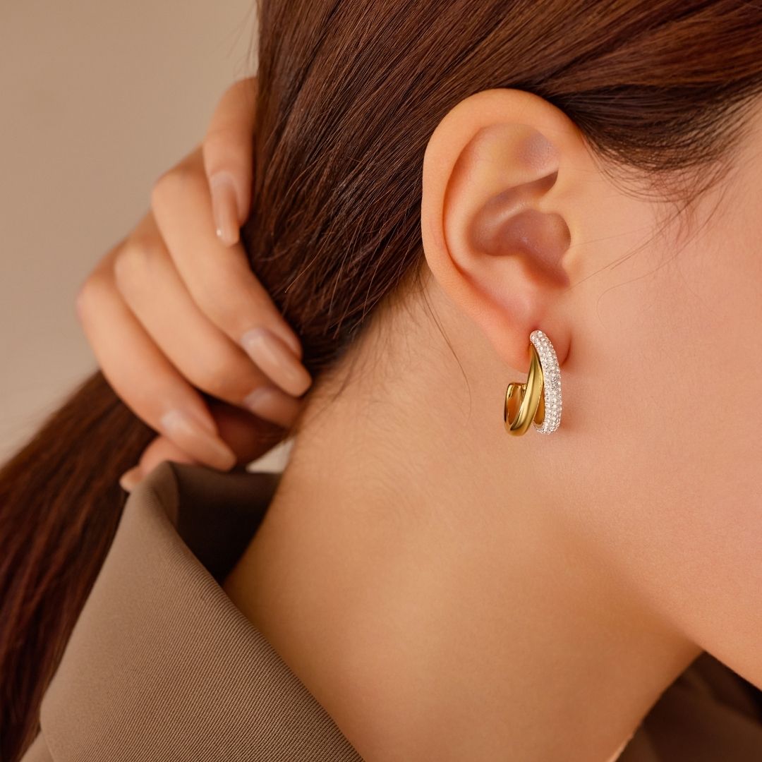 The contrast between the polished gold finish and the delicate embellishment creates a hoop that feels both modern and timeless - effortlessly striking without being overpowering. The Embellished Muse Hoops are proof that classics can still surprise.