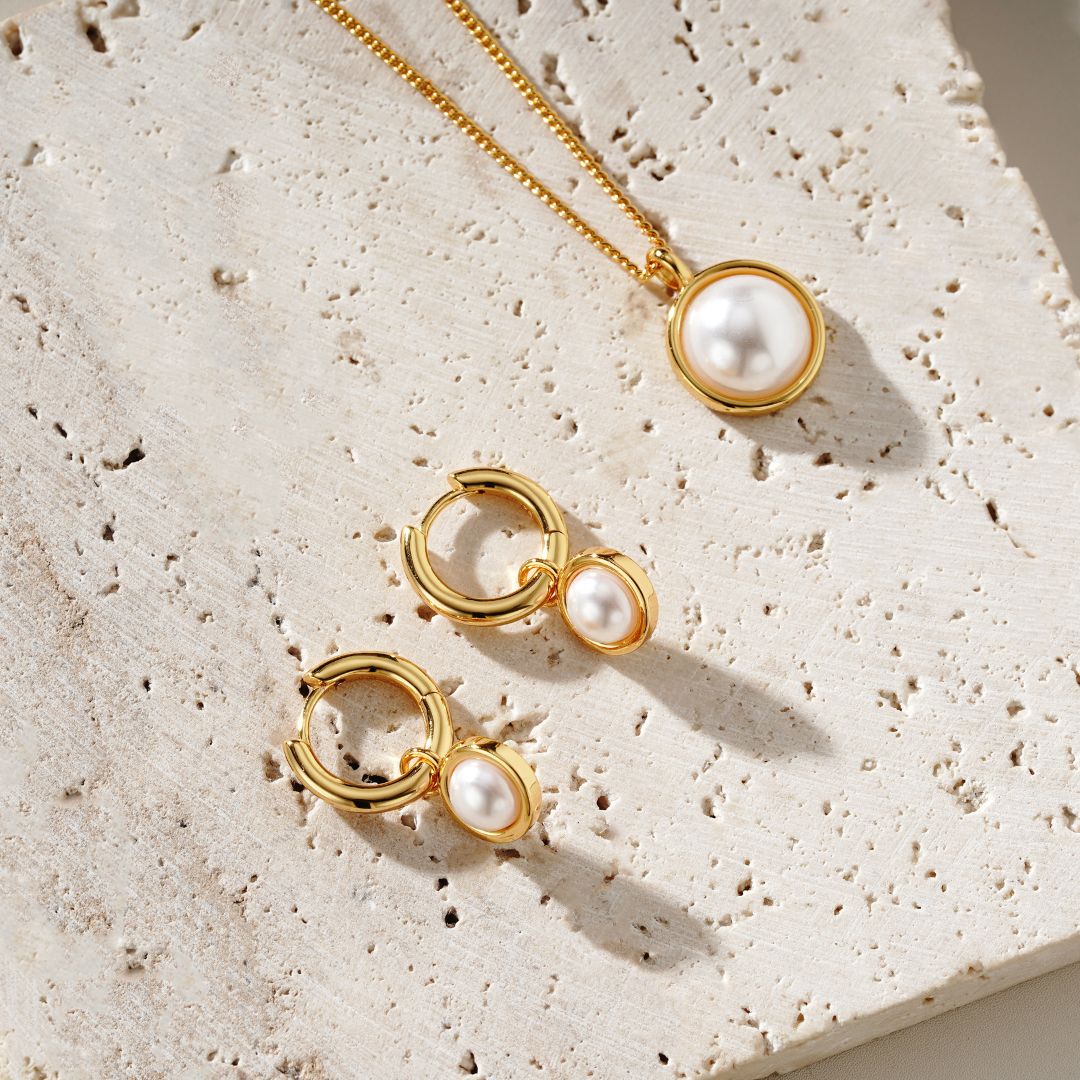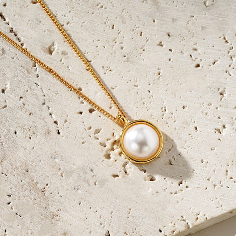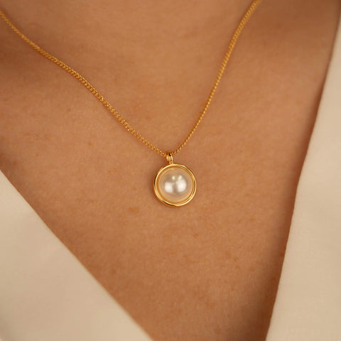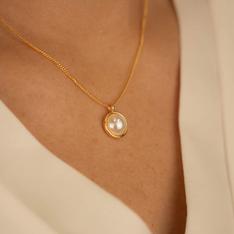 Lilia Pearl Necklace Gold - 16k gold plated with 8cm extension