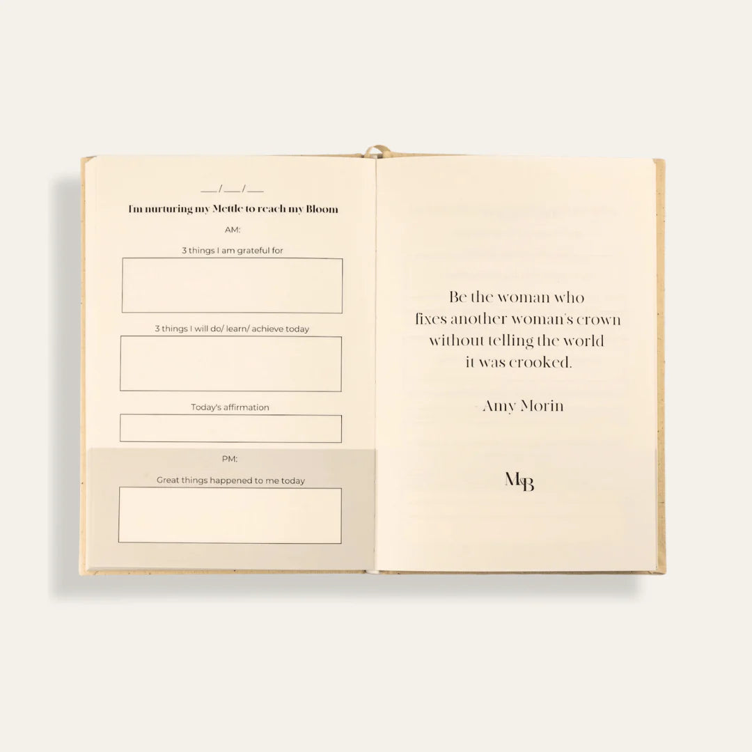 Journaling is a transformative practice that holds the power to enhance and fortify your mettle, your inner strength, and resilience. By putting pen to paper and engaging in regular journaling, you create a safe space to explore your thoughts, emotions, and experiences with unwavering honesty. Journaling strengthens your mettle by providing an outlet for self-reflection, problem-solving, and self-expression. By setting aside 2-3 minutes every morning and night you are investing in yourself and Nurturing Your Mettle To Reach Your Bloom.