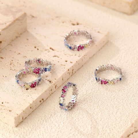 Beautiful colours and sparkle. Matches with any other rings.